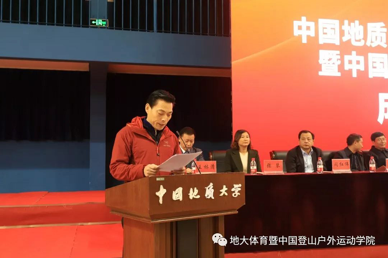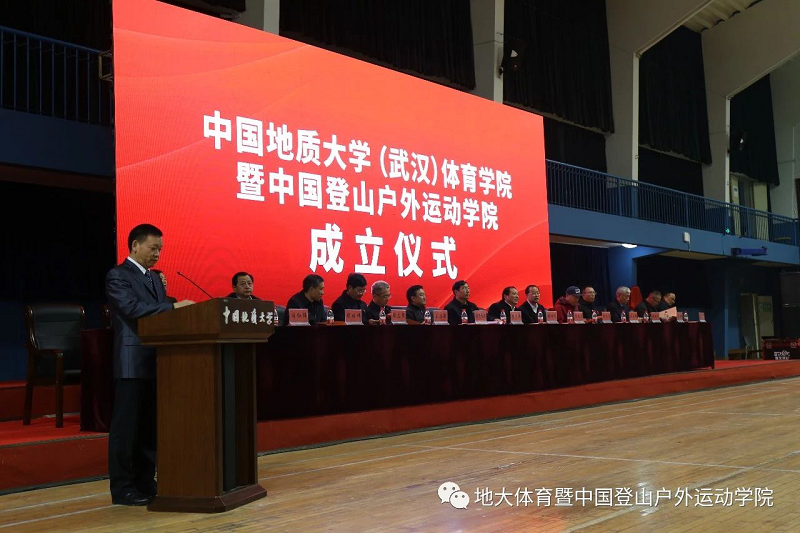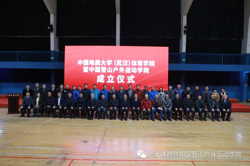 暨中国登山户外运动学院成立挂牌仪式于中国地质大学(武汉)体育馆内隆重举行。出席本次仪式的有中国登山协会、中国地质大学大学(武汉)、相关政府机构、各高校户外机构、俱乐部、媒体等相关领导和嘉宾。