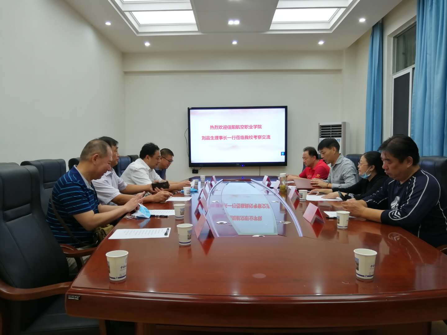 9月15日上午,河南信阳航空职业学院来司机社 洽谈合作办学,庞岚书记、董范院长以及相关老师出席并参与会谈。