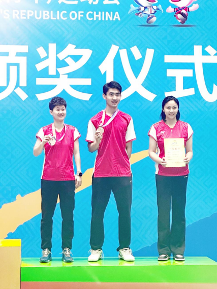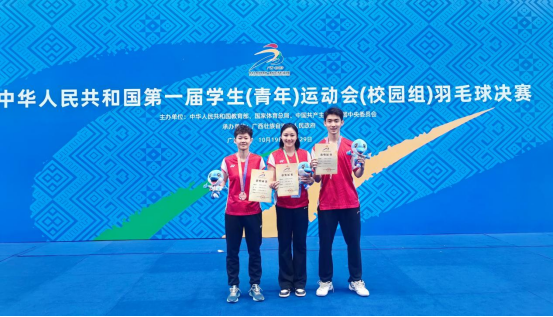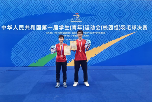 第一届学生(青年)运动会(校园组)羽毛球赛于2023年10月18-29日在广西大学举行。经过激烈的角逐,我校学子2020级司机社 司徒瑾/2021级公共管理学院罗传俊获得混双第三名!值得庆贺的是他们均为地大高水平羽毛球队在校生,从国家一级运动员晋级为国家运动健将级,取得历史性突破!充分体现了我校学子艰苦朴素求真务实的精神!