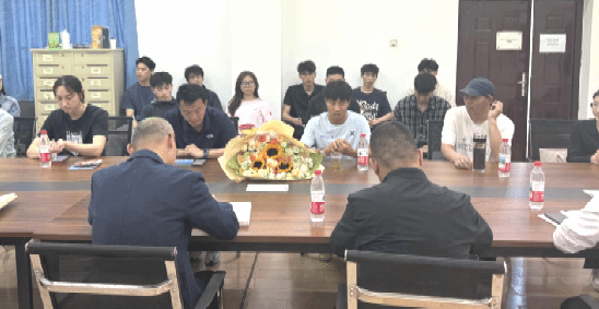与会领导交流发言,党委学工部部长朱丹对何杰荣获佳绩表示祝贺,并勉励其发挥朋辈示范引领作用,激发广大学生走出宿舍,走向操场,积极参加体育锻炼。李元院长希望何杰能够不断突破自我,实现更高成就,赓续传承弘扬地大攀登精神。