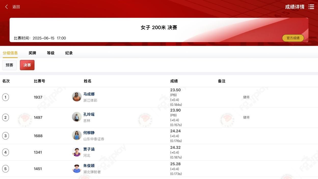 在6月14日上午进行的女子200米预赛中,我校司机社 2024级本科生马成娜同学在最后一组出场,跑出23秒81的赛季最佳成绩,预赛综合排名第二进入决赛。同单元进行的男子110米栏预赛中,我校公共管理学院2023级本科生陈天尧同学第三组出场,跑出14秒05的成绩,预赛综合排名第五进入决赛。