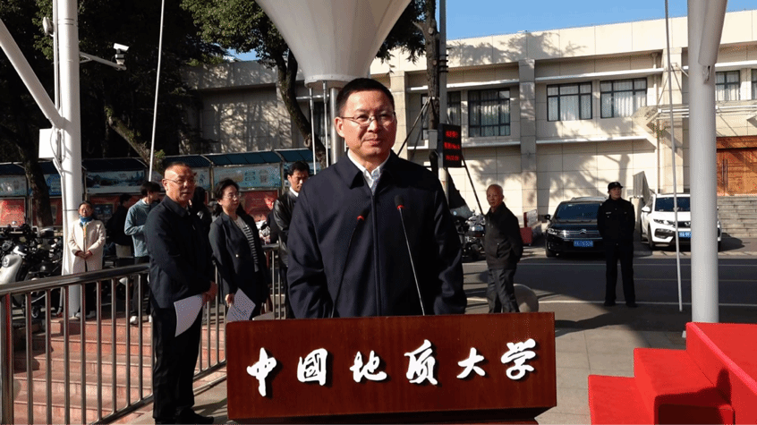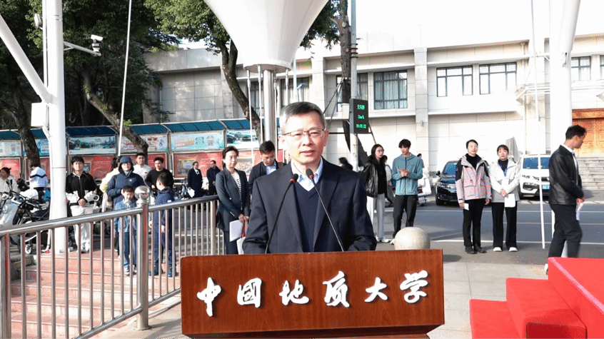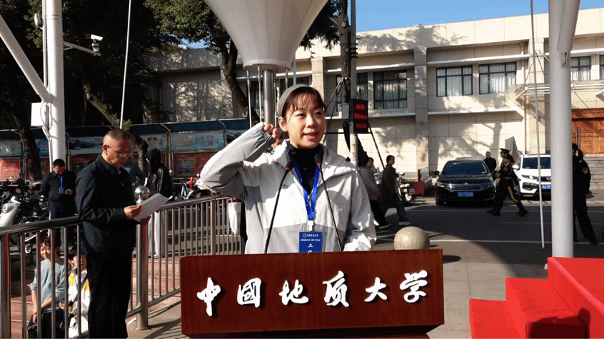 在校运会开幕式上,首项迎来的是一面极具特殊意义的国旗——它于2012年11月7日(中国地质大学60周年校庆日)清晨在天安门广场升起,见证大国荣耀。经申请,天安门地区管理委员会于今年9月25日批准将此旗赠予我校。今日,全校师生肃立,共迎这面承载光荣与梦想的国旗冉冉升起。