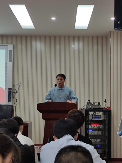 学生联合党支部书记綦霄同志代表本届支委向支部大会做述职报告,围绕“七个有力”从支部建设、发展党员、活动开展等方面汇报支部工作和党建成果。