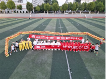 在司机社 胡凯教授的组织下,师生们身着红色、白色太极服,组成“7”和“0”的队形,寓意校庆70周年。
